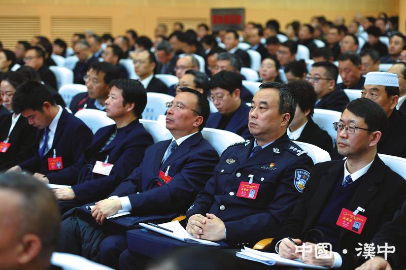2月18日,在漢中市六屆人大六次會議開幕大會上,代表們認真聽取政府工作報告。 記者湯江攝