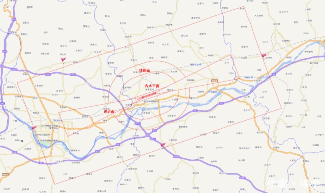 重點防控區域:機場跑道端頭外圍,包括城固縣柳林鎮全域及沙河營鎮西灣村、鄭家營村。