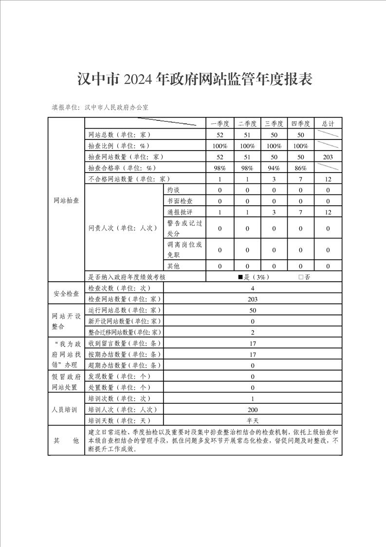 漢中市2024年政府網(wǎng)站監(jiān)管年度報(bào)表