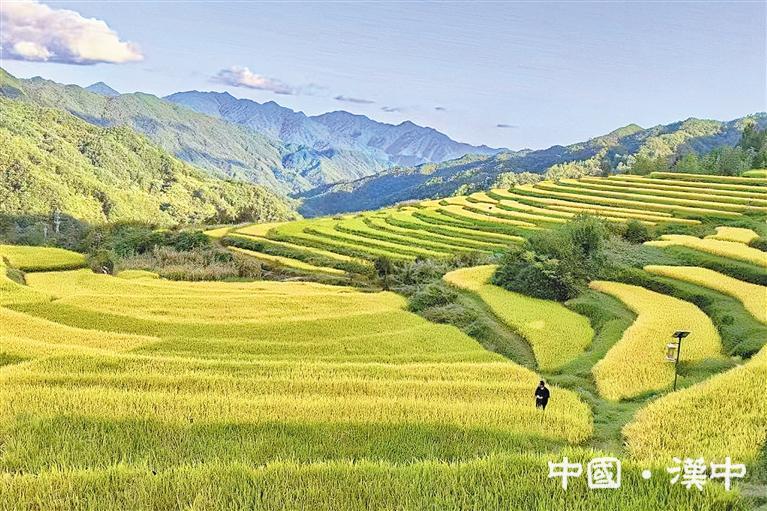 圖為九月十四日拍攝的佛坪縣岳壩鎮草林村的高山冷水稻。近年來,該村采用“黨支部+村經濟合作社+農戶+X”的發展模式,嚴格按照生態無公害要求規范種植,預計今年畝產將達五百五十公斤。本報通訊員張軒瑜攝