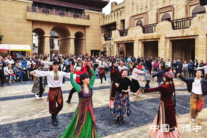 雙節(jié)期間,興漢勝境景區(qū)全新推出的和田歌舞美食集市,為游客們呈現(xiàn)了別具一格的文化盛宴。