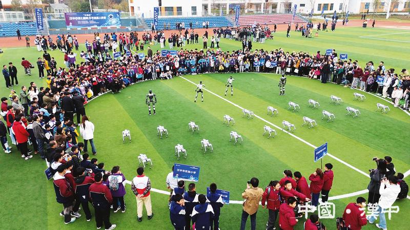 智能機(jī)器人與機(jī)器狗在開(kāi)幕式上的精彩表演,吸引眾多學(xué)生駐足觀看。