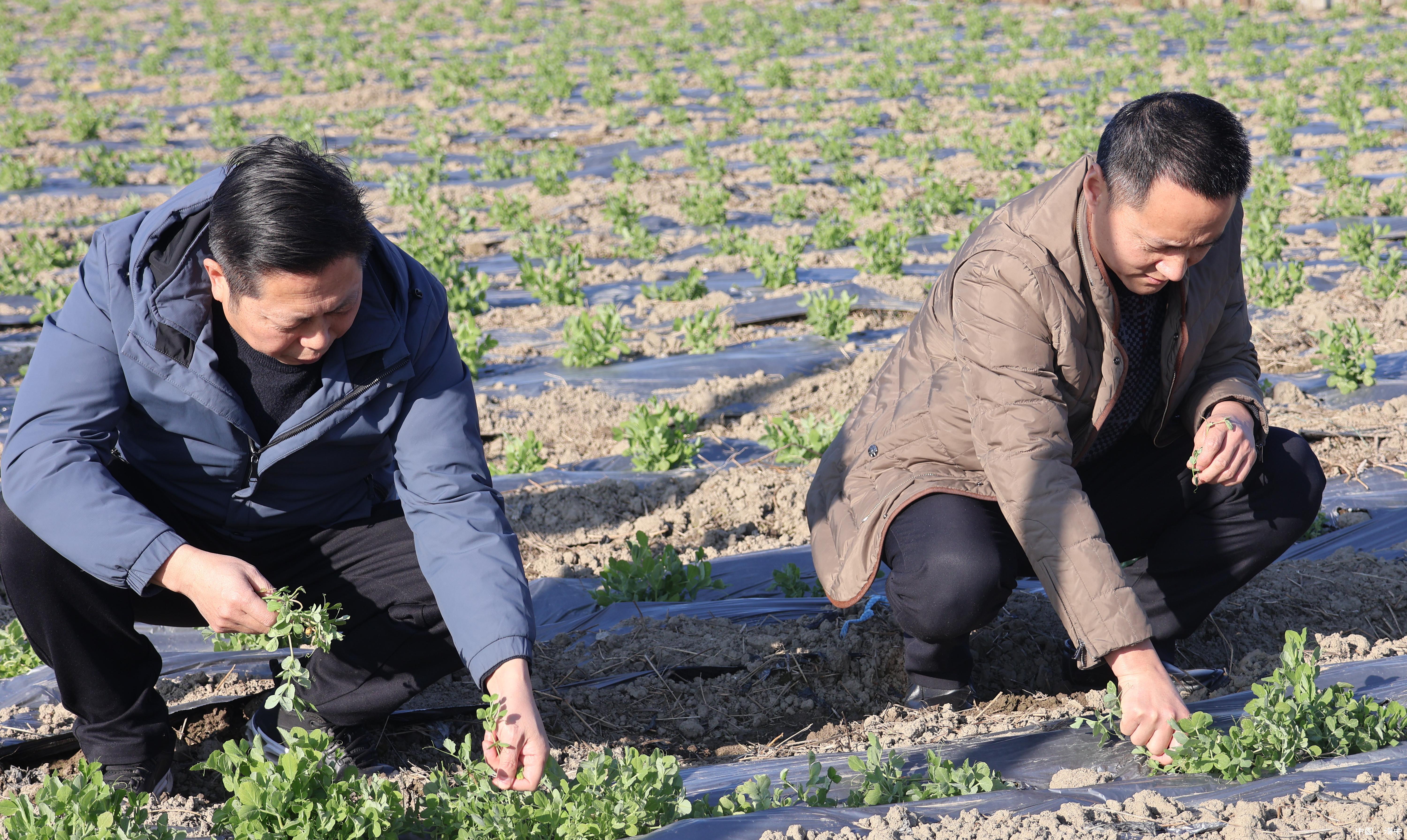 在黃官鎮武營村的荷蘭豆種植基地,十幾名工人正在田間打樁架網,為春季的豐收打基礎。村民周友玲一邊修整竹竿,一邊笑著說:“這里一年四季有活干,每天能掙100多元,還不用出遠門,心里踏實。”