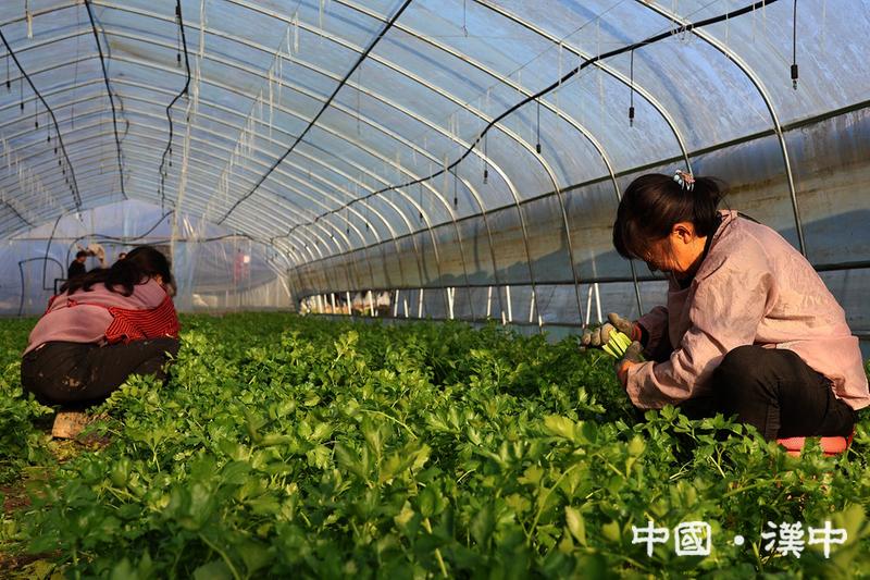 村民在百順盛旺蔬菜種植基地采收芹菜。