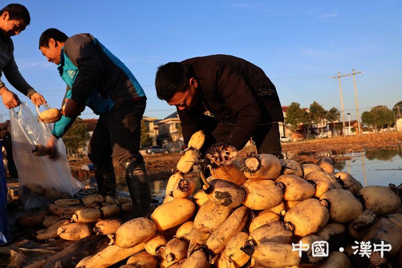 梁山鎮榮國村蓮藕迎來豐收。