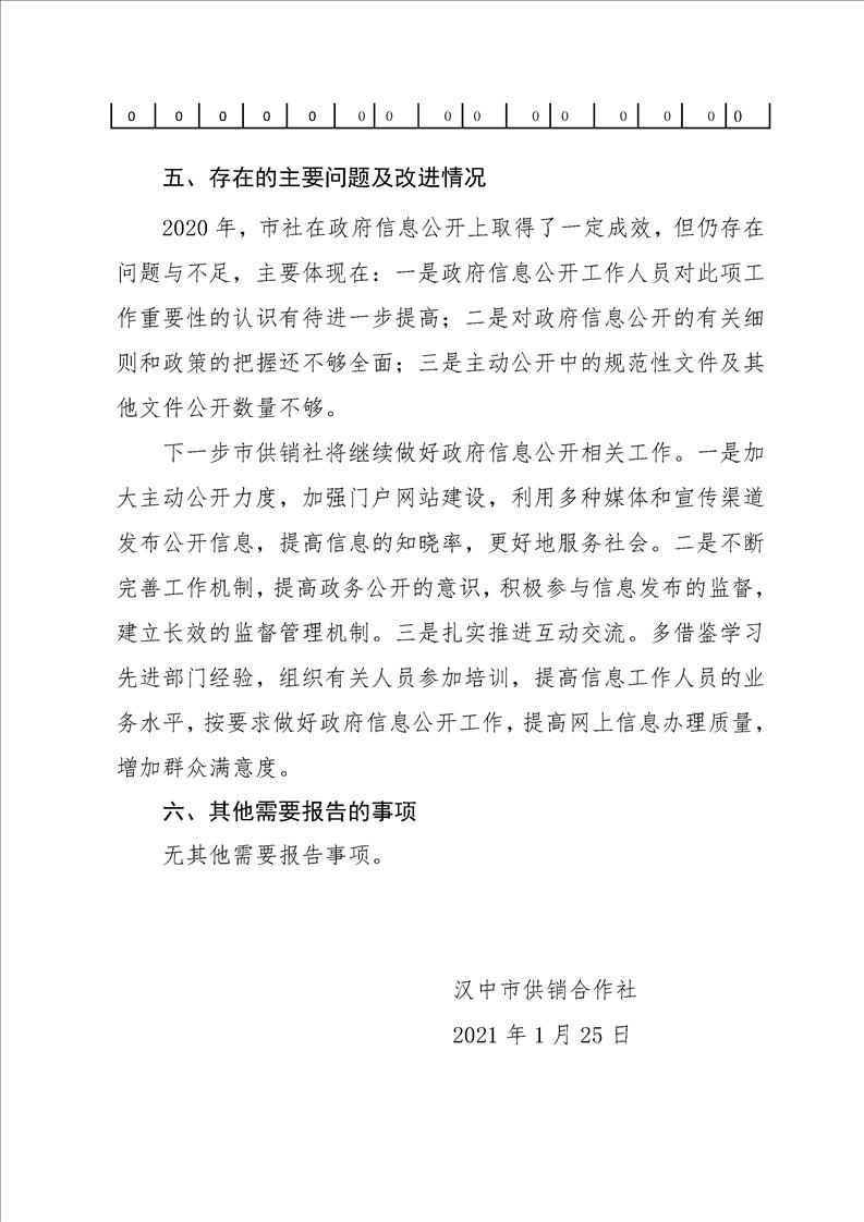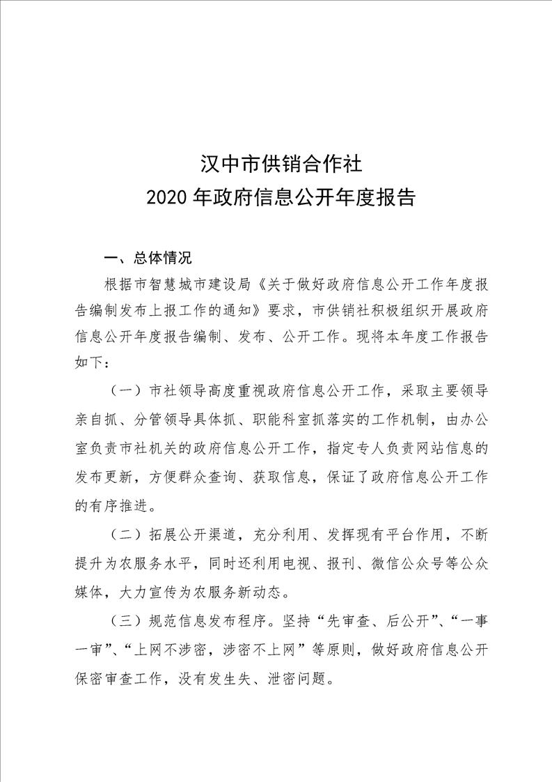漢中市供銷合作社2020年政府信息公開年度報告