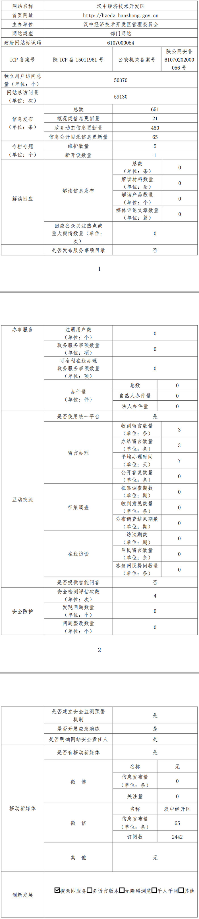 漢中經(jīng)濟(jì)技術(shù)開發(fā)區(qū)網(wǎng)站工作年度報(bào)表(2018年度)