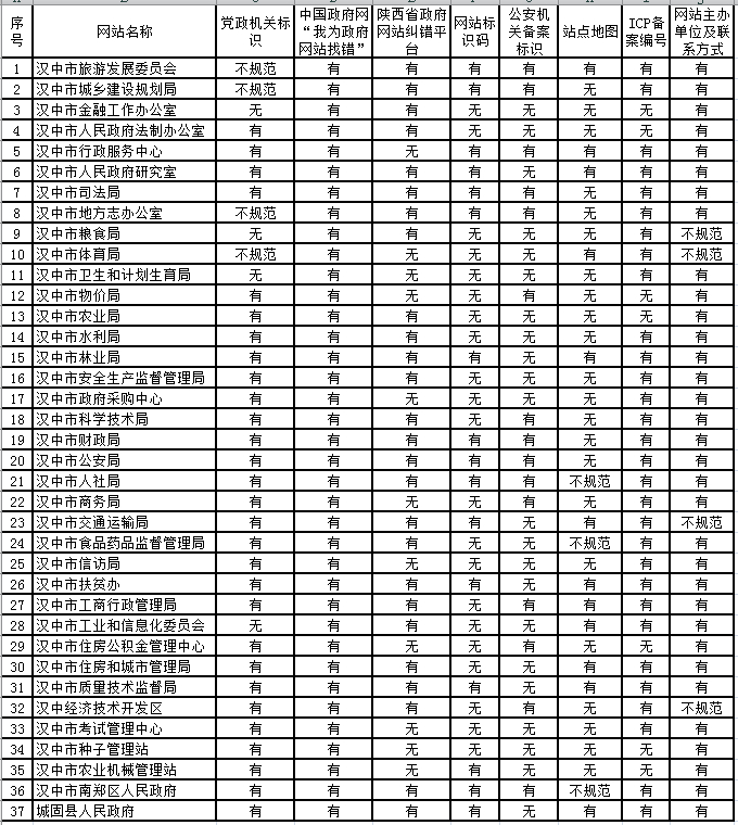 漢中市政府網(wǎng)站2018年二季度檢查情況一覽表