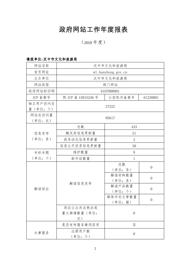 漢中市文化和旅游局網站工作年度報表(2019年度)